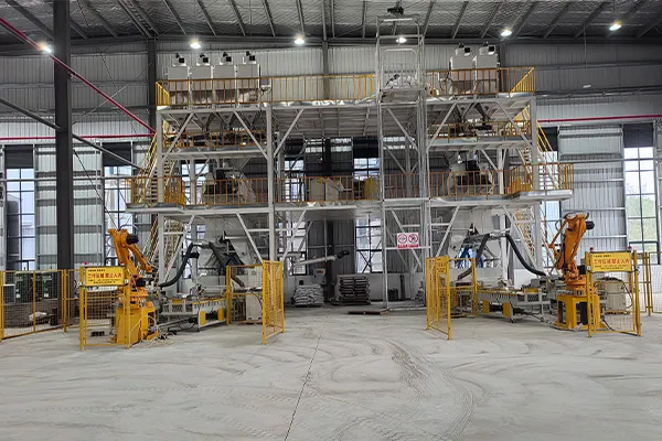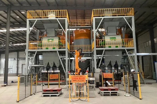 Автоматические линии по производству сухих строительных смесей с годовой производительностью от 20 000 до 50 000 тонн в основном состоят из высокоэффективной смесительной системы, системы хранения, системы транспортировки, подъемной системы, системы взвешивания, системы предварительного смешивания, системы упаковки, системы пылеудаления, системы контроля уровня материала, автоматической системы паллетирования, системы сигнализации, системы сжатого воздуха и общей системы управления оборудованием.
