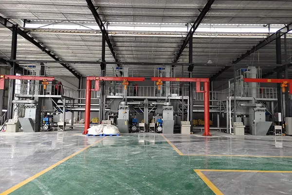 Линия по производству гипсовых растворов в основном состоит из системы хранения, системы транспортировки материалов, автоматической системы дозирования, высокоэффективной системы смешивания в условиях невесомости, усовершенствованной системы пылеулавливания, пневматической системы, автоматической системы упаковки, автоматизированной системы управления и платформы из высококачественной стали.