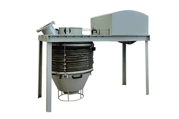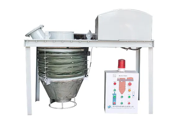 Высокоэффективный беспыльный загрузчик в основном состоит из ручного (или пневматического) дроссельного клапана (поставляется заказчиком), основного блока подъемника, загрузочной головки, системы контроля уровня материала, автономного пылесборника (поставляется заказчиком) и устройства управления.