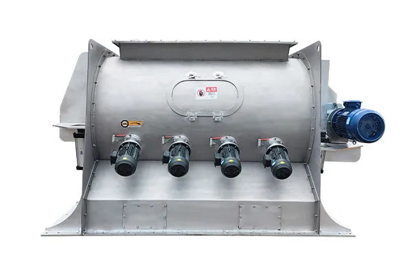 Плужный смеситель из нержавеющей стали состоит из четырех частей: круглого барабана, передаточного механизма, плужных ножей и летающих ножей; изготовлен из нержавеющей стали марки 304. Во время работы плужные ножи совершают круговое движение, и материал разделяется лезвиями плужных ножей на два направления, образуя двунаправленный поток материала.