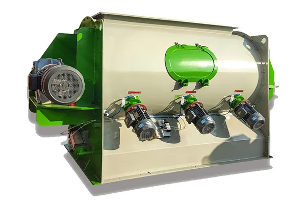 Плужный смеситель состоит из четырех частей: круглого барабана, передаточного механизма, плужных ножей и летающих ножей. Во время работы плужные ножи совершают круговое движение, и материал разделяется лезвиями плужных ножей на два направления, образуя двунаправленный поток материала.