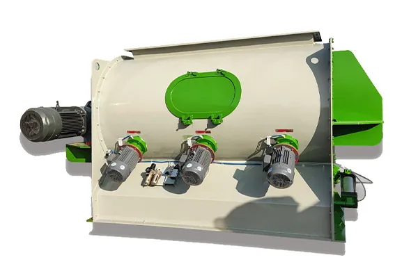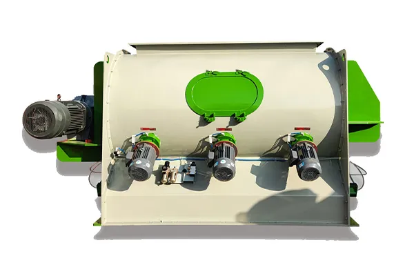 Над летающими ножами может быть установлена распылительная форсунка для реализации смешивания с добавлением жидкости. Поскольку в этом месте плотность скопления материала под действием среза летающими ножами относительно мала, распыленная жидкость легче проникает и смешивается с порошком.