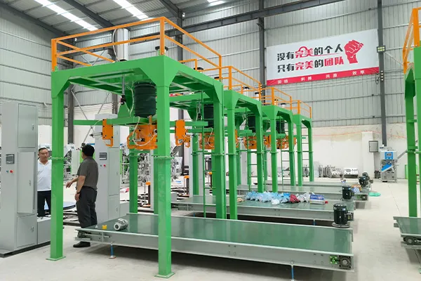 Упаковочная машина для мешков для сыпучих материалов в основном состоит из механизма подачи (вибрационного питателя или ленточного питателя), основного корпуса, весовой платформы, устройства подвески мешков, устройства зажима мешков, подъемного механизма, конвейера, электрической системы управления и пневматической системы управления. Во время работы система упаковки полностью автоматизирована с помощью программирования ПЛК, за исключением ручной укладки мешков, последовательно выполняя зажим мешков, разгрузку материала, взвешивание, развязывание мешков и транспортировку. Система обеспечивает точное измерение, простоту эксплуатации, низкий уровень шума, минимальное количество пыли, компактную конструкцию, простоту установки и надежную безопасность благодаря взаимодействию между рабочими станциями.